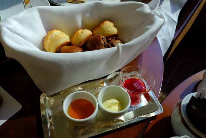 クロテッドクリーム、メープルシロップ、いちごジャムと共に提供されました。3人で行ったのでクリームやジャム類は2つ用意していただけました。