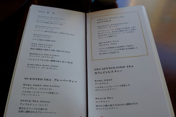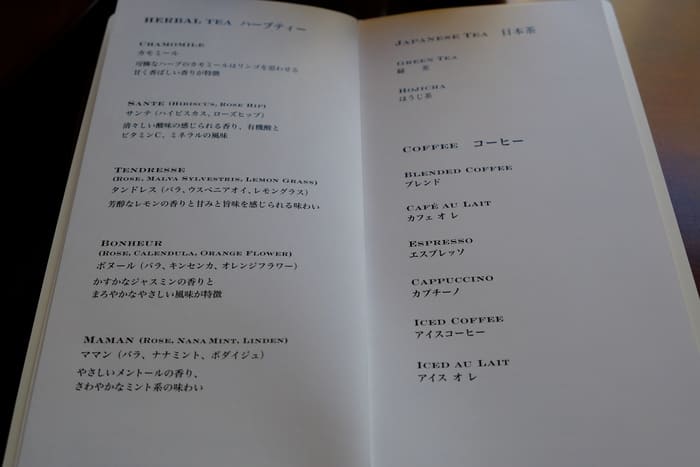 ドリンクは全部で30種類。茶葉の種類も変更可能でおかわり自由です。基本的にはカップで提供されるので、量もそこまで多くなかったので、色々な種類を楽しめると思います。何回かポットで提供されたこともあったので、オーダーしたものによるのかもしれません。私はボヌールが気に入りました。バラやキンセンカを使用した華やかな香りで素敵な味でした♡