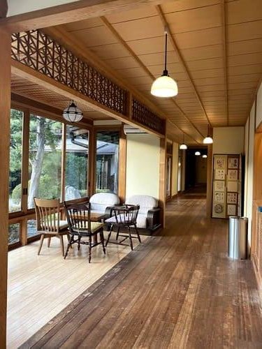 大正亭家族湯近くの休憩スペース。さっきからガラス張りを連呼していてしつこいですが、ここもガラス張りで気持ちがいいです(笑)
