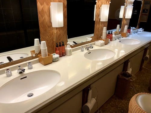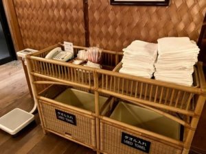 脱衣所は人がいないタイミングで撮影させていただきました。基本的なアメニティは完備されています。
