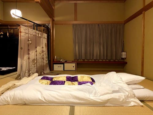 夕食を食べている間に仲居さんが布団の準備をしてくれます。夕食をいただく部屋とは別の部屋(こたつがあった部屋)に用意してくれます。どうしても食事の匂いが部屋に残ってしまうので、別の部屋が寝室になるのは嬉しいです。
